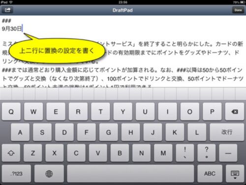 DraftPadは正規表現も使えるエディタなので一括置換に威力を発揮します。わからない部分をとりあえず「###」とし、後で調べてから置き換える。二、三カ所なら手作業でもできますが、四を超えると「たくさん」です。そうした場合はアシストの力を借りる。Draf…