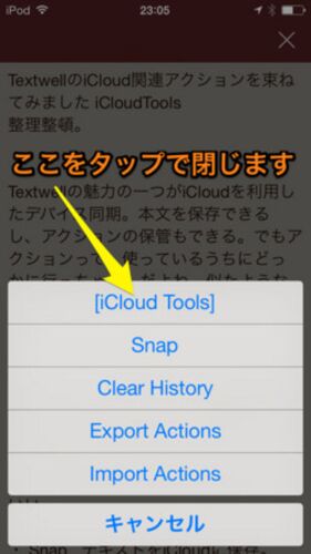 整理整頓。 Textwell 1.2.2分類: 仕事効率化,ユーティリティ価格: \300 (Sociomedia)Textwellの魅力の一つがiCloudを利用したデバイス同期。本文をサーバーに保存できるし、アクションの保管もできる。でもこういうアクションって、使っているうちにどっかに…