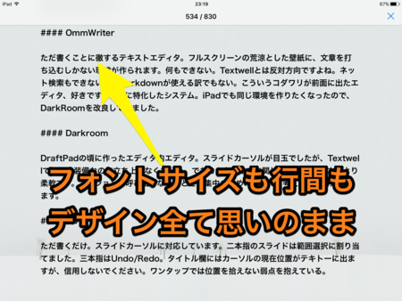 iPad版もあるけれど日本語が使えない。外付けキーボードなら大丈夫なのかな。でもあんまりなので、Textwell上で同じ環境を作ろうと思い、DarkRoomを改良してみました。