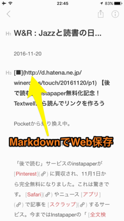 Markdownが使えるエディタ。URLスキームもあるし使い勝手は良いけれど、さらに全自動アプリWorkflowのターゲット・アプリになった。今までWorkflowで処理して、最終的にどこに出力するか迷っていたところが、これからはBearで一本化できます。