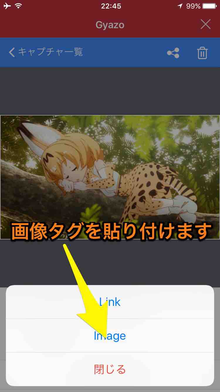 TextwellでGyazoアクションを起動し、対象の画像を開きます。